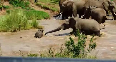 ケニアで子ゾウの川渡りは命がけだった