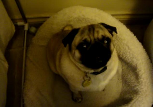 ベットに行きなさい 嫌だ と必死に抗議するパグちゃん|あに丸ズッキーニ
