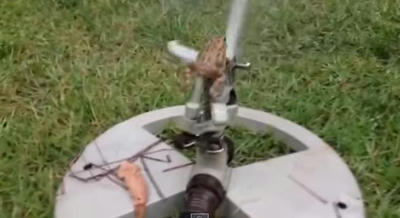まるで水遁の術のように水を巻くカエルさん|あに丸ズッキーニ