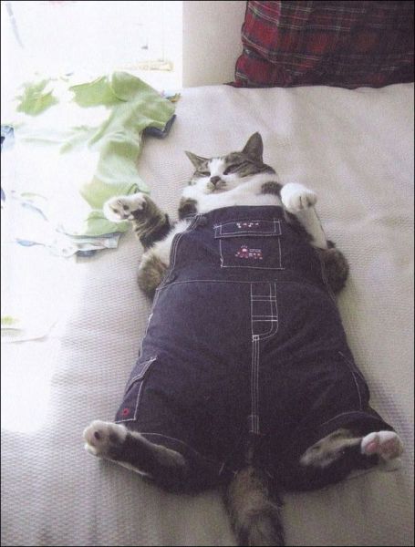 「(つ∀-)オヤスミー画像」 つなぎ姿でおやすみ