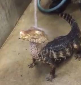 売れ残り、コビトカイマンに、シャワーをかけてます。 pic.twitter.com/v6aZI9Kl9b