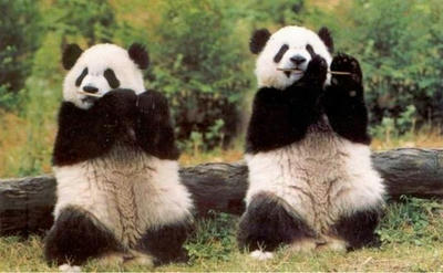 笛を吹いてるパンダ達