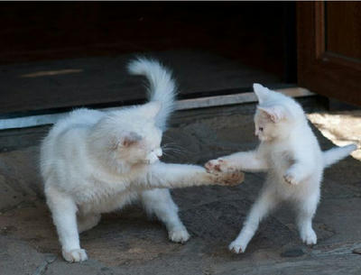 突然の攻撃も見事にはらう子猫であった