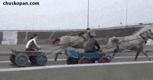 高速道路を走る馬車|あに丸ズッキーニ
