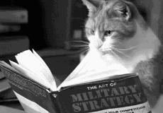真剣に本を読む猫