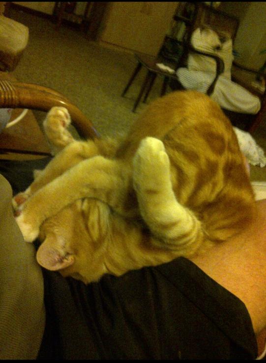 飼い主さんの上で眠ってるんだけど