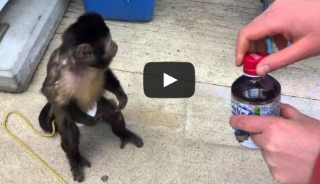 缶ジュースを自動販売機で買って飲んじゃうおサルさん