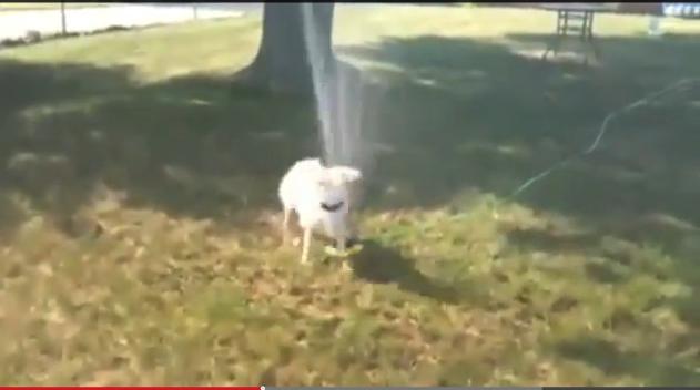 スプリンクラーで遊ぶワンコたち|あに丸ズッキーニ