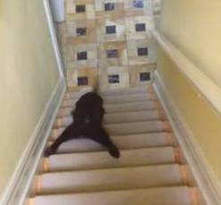 ワンコが階段でスライディング下り