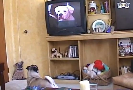 TVに犬が出てくると興奮して回転を始めるパグちゃん|あに丸ズッキーニ