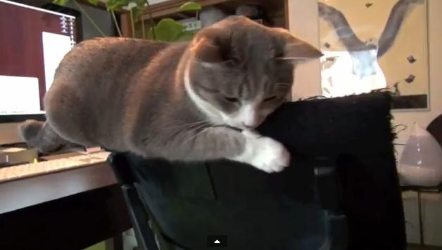 ネコさんはPCのチェアーの先端が好き|あに丸ズッキーニ
