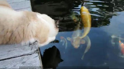 鯉とあそぶネコさん