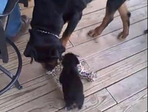 大きいワンコとちいさいワンコのロープ引き|あに丸ズッキーニ