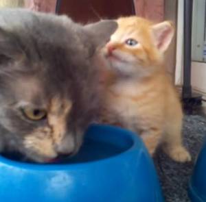 茶トラの子猫の水の飲み方が半端なくカワイイ