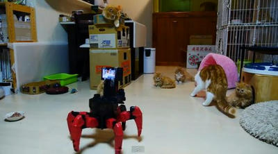 クモロボットはカメラ搭載でホッケーのパッドみたいなものを飛ばし猫じゃらしもついてますWW