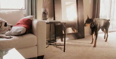 ジリジリと詰め寄るドーベルマン