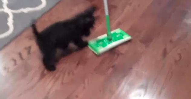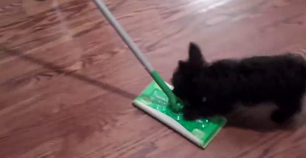ネコさんに負けていられないお掃除するワンWW|あに丸ズッキーニ