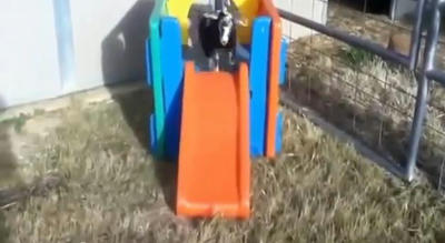 子ヤギが滑り台をスべるとこうなるWW