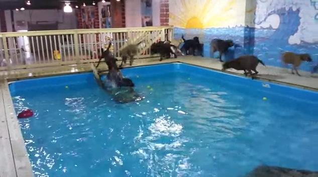 ワンコが一気にプールサイドに流れ込むWW|あに丸ズッキーニ