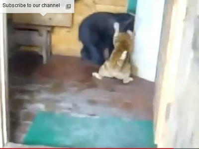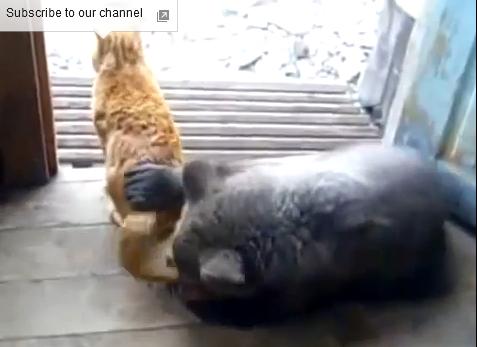 かわいい子グマ ネコさんにしつこくジャレつくもネコさんの怒りを買い反撃されるWW|あに丸ズッキーニ