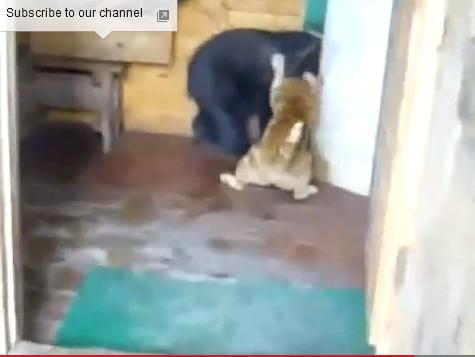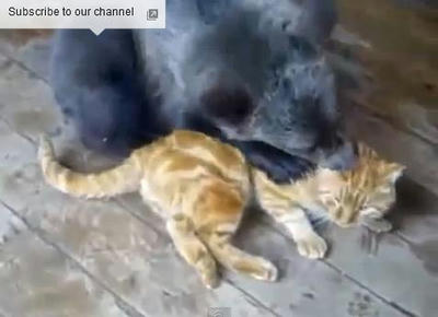 かわいい子グマ ネコさんにしつこくジャレつくもネコさんの怒りを買い反撃されるWW