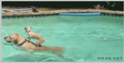 ワンコ親子が仲良くプールのはずがロデオにWW