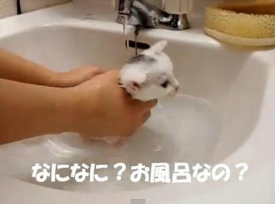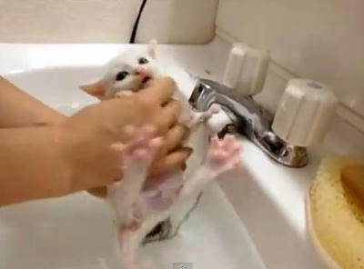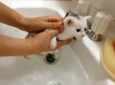 お風呂を嫌がる赤ちゃんネコ