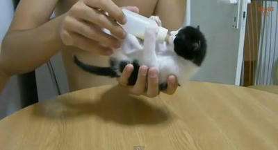 ネコの赤ちゃんの哺乳瓶に食らいつく姿が面白すぎる