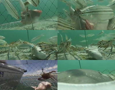 カニ取り用のネットにカメラを取り付けて観察した結果は
