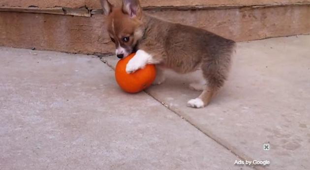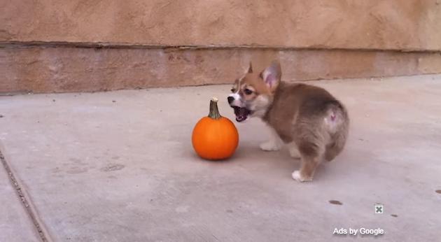 ちいさいカボチャで遊ぶコーギーの仔犬がかわいい|あに丸ズッキーニ