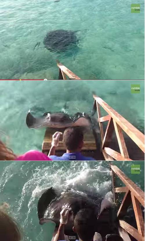 水中にいたエイくんが人に近づいたと思ったら