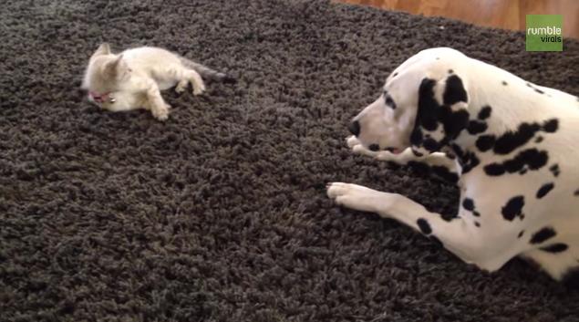 ダルメシアンと元気すぎる仔猫
