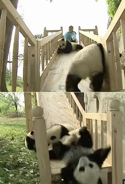 下にパンダがいようとも転がり落ちてくるパンダくん達