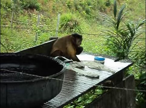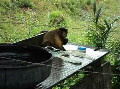 昔ながらの洗濯をするおサルさん|あに丸ズッキーニ