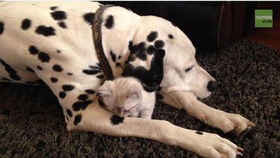 仔猫のワンコパパになったダルメシアン|あに丸ズッキーニ