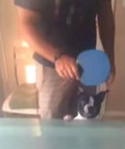 ピンポンに夢中の飼い主さん それを見ていたボストンテリアくん