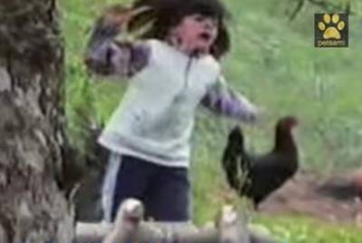 俺の縄張りで好き勝手なことはさせないと少女を撃退するオンドリ|あに丸ズッキーニ