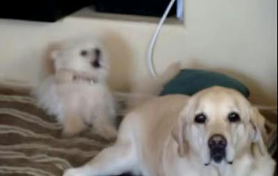 喜んでシッポをふるワンコの往復ビンタに抵抗するワンコの反応が楽しすぎる