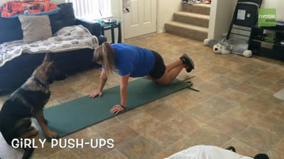 飼い主さんが腕立て伏せを始めると自分もそれに合わせて立ったりしゃがんだり