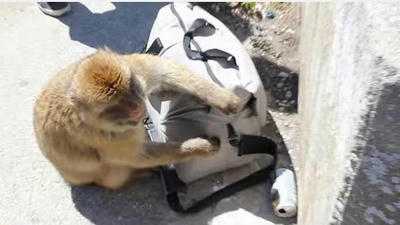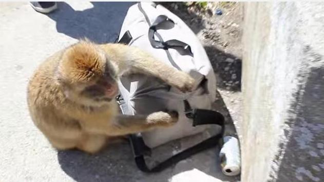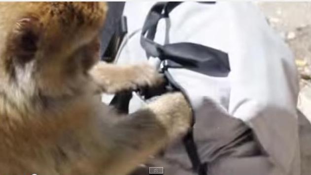 堂々とジッパーをあけ盗みを働くお猿さん