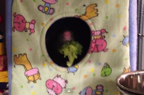 巣穴に何度もブロッコリーを投入し続ける飼い主さん