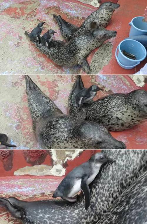 さまぁ~ず 三村君と大竹君と同じ名前の仔ペンギン 天敵のアザラシくんの上に乗りお魚のおねだり|あに丸ズッキーニ