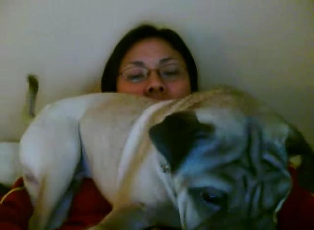 飼い主さんの上に乗っかり居座るワンコに飼い主さんも怒り心頭???|あに丸ズッキーニ