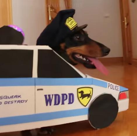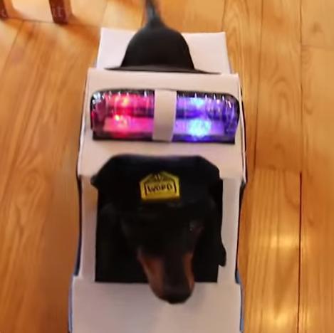 パトカーに変身した警官ワンコは