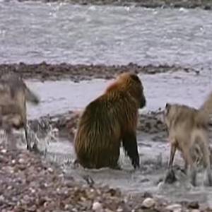 狼4匹VS小熊のエサ争い