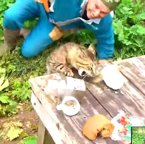 釣った魚に襲いかかるネコさん|あに丸ズッキーニ