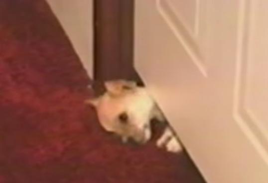 小さいワンコ ドアの隙間から侵入を試みる|あに丸ズッキーニ