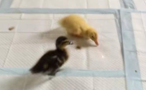 ネコさんだけじゃなかったレーザーポイントに夢中なアヒルのヒナ