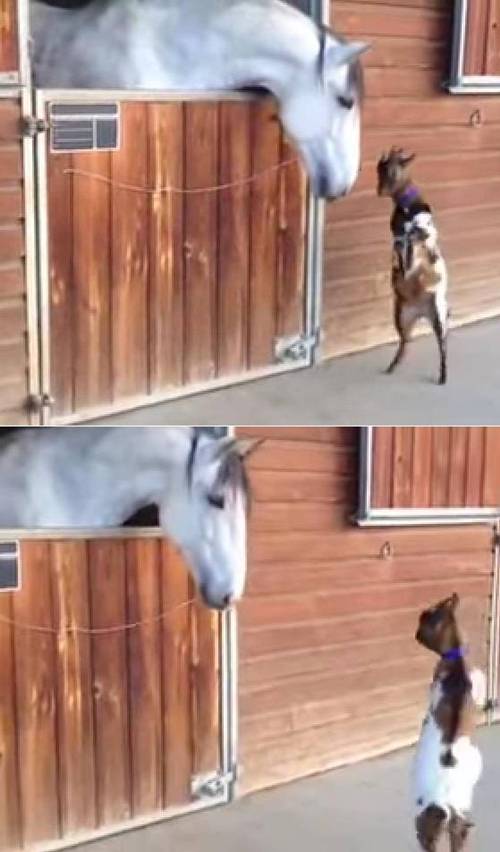 愛おしい瞳でみつめるウマさん 戦うつもりの子ヤギちゃん