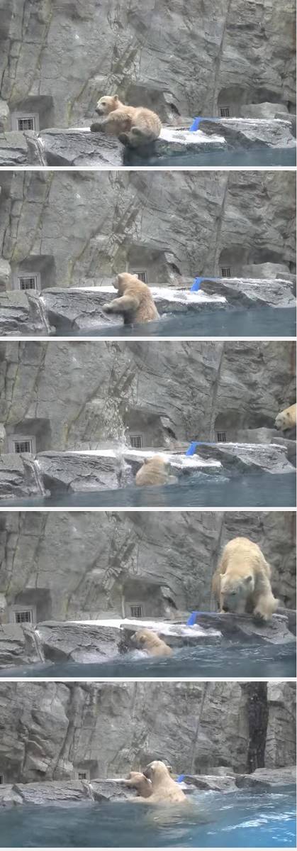 無邪気に遊んでいた白くまの赤ちゃん 池に落ちてさぁー大変